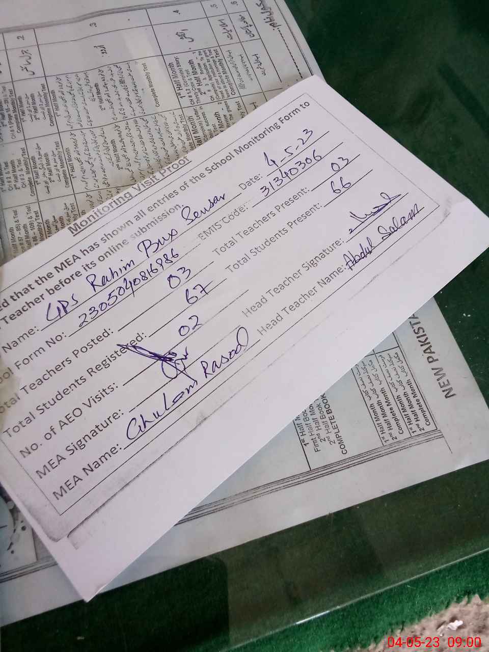 | EMIS Code: 31340306 | Name of School: GPS RAHIM BUX SANSARAIN | |||