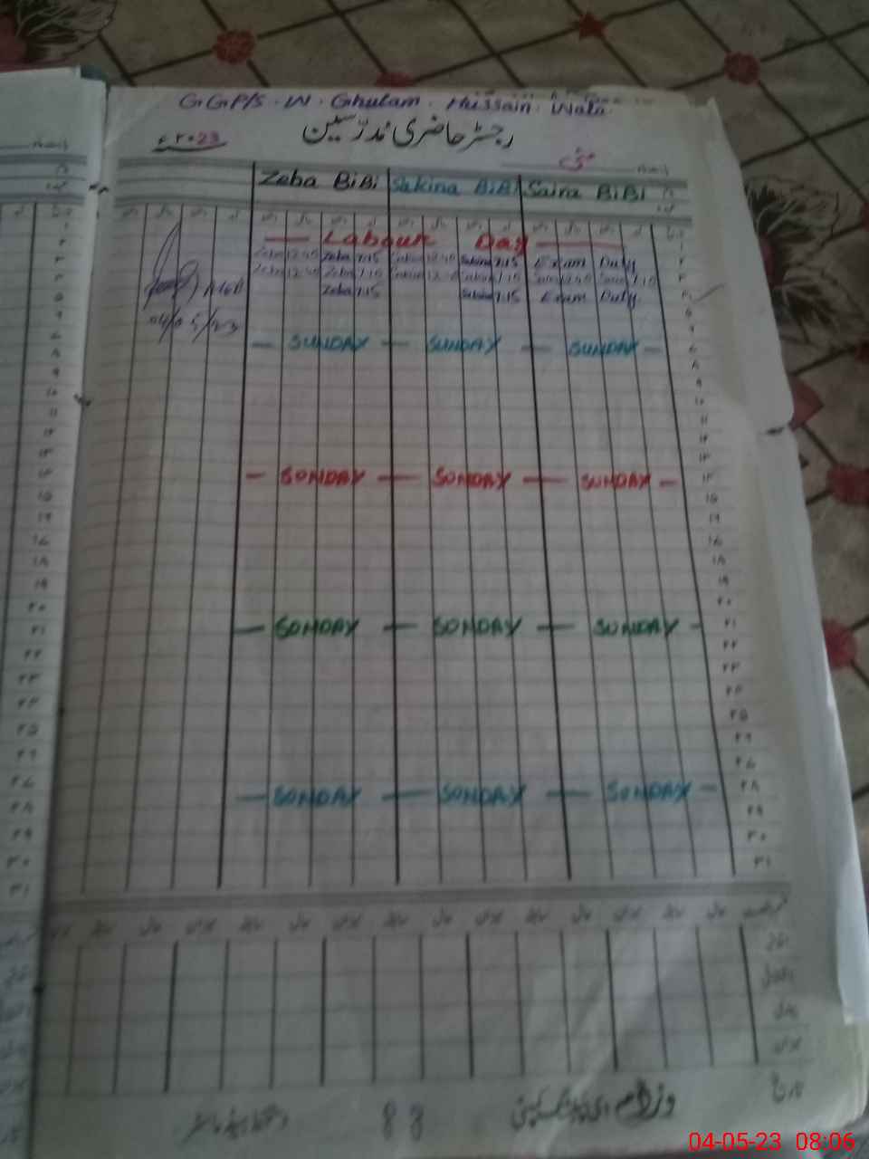 | 42**** | Sa**** Bi**** | Contract | 1 | 8 | 0 | 0 | 0 | 0 | 0 | 0 | 1 | Exam Duty | |