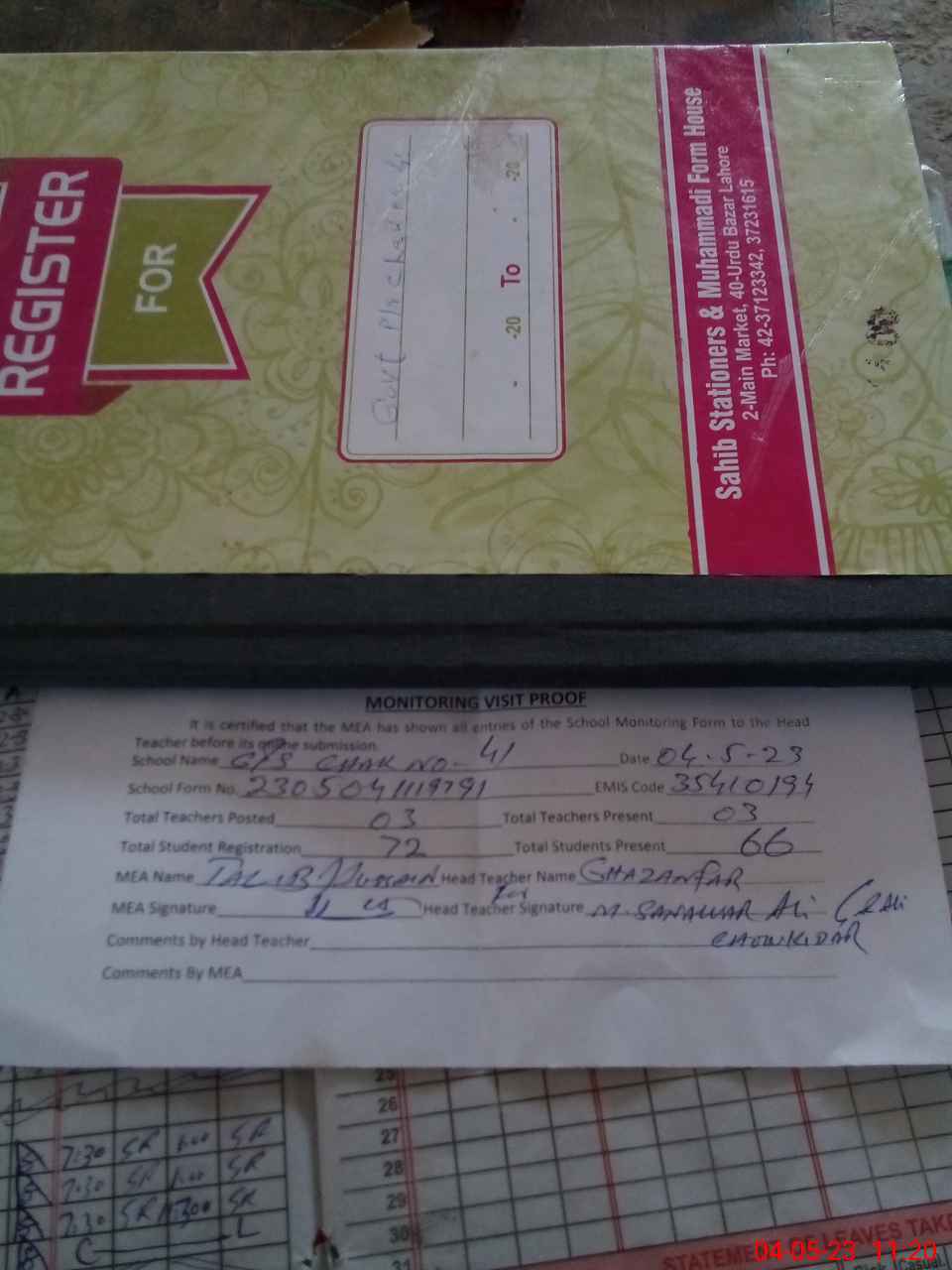 | EMIS Code: 35410194 | Name of School: GPS CHAK NO 41 | |||