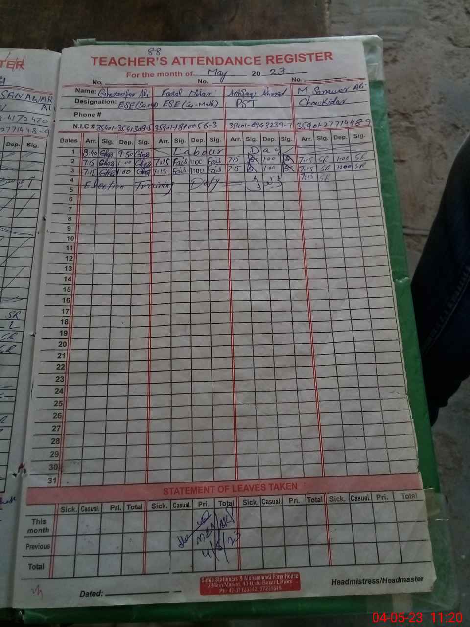 | Name: Gh**** Al**** Kh**** Designation: (School Headmaster's/Headmistress's) PST Phone/Cell Number: 03**** |