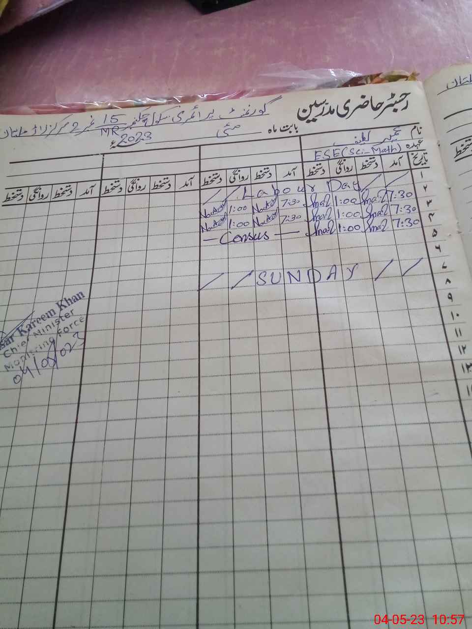 | District: MULTAN | Tehsil: MULTAN SADAR | Markaz: LAR - MALE | Level: Primary | |