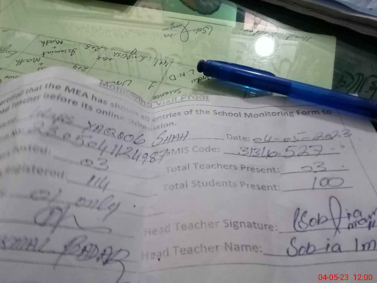 | Attendance Register | Head Teacher | MEA with School | Visit Proof |