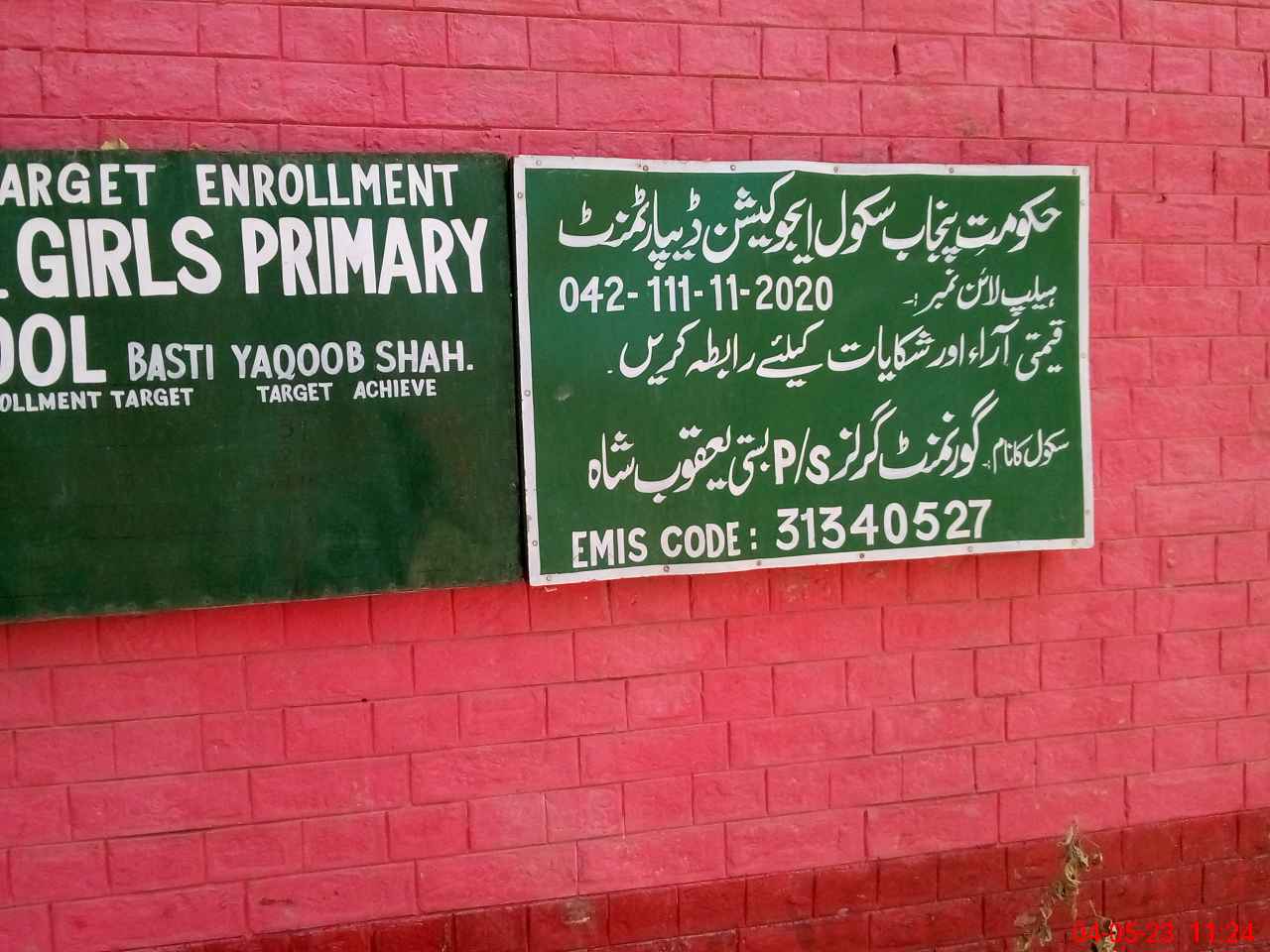| EMIS Code: 31340527 | Name of School: GGPS YAQOOB SHAH | |||