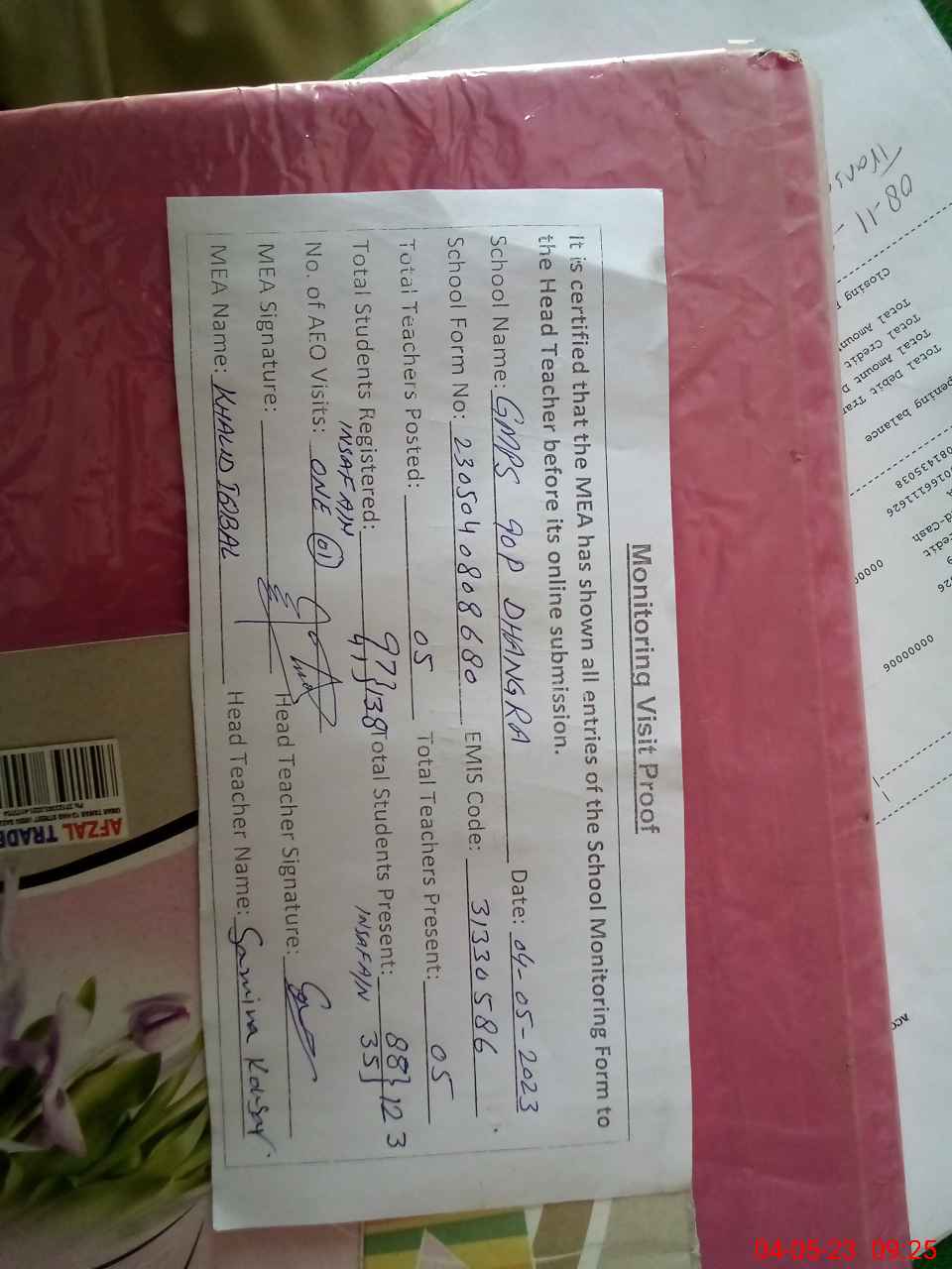 | EMIS Code: 31330586 | Name of School: GMPS 90/P DHANGRA | |||