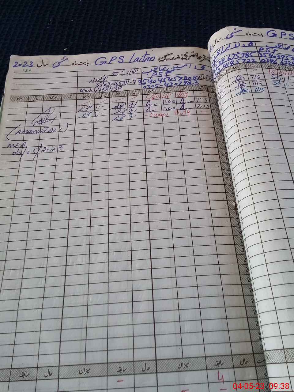 | Remarks (Use Separate Page if Required): Amin PST went on Ex duty at Government High School Panwan but his Duty order not available in the School | |||||