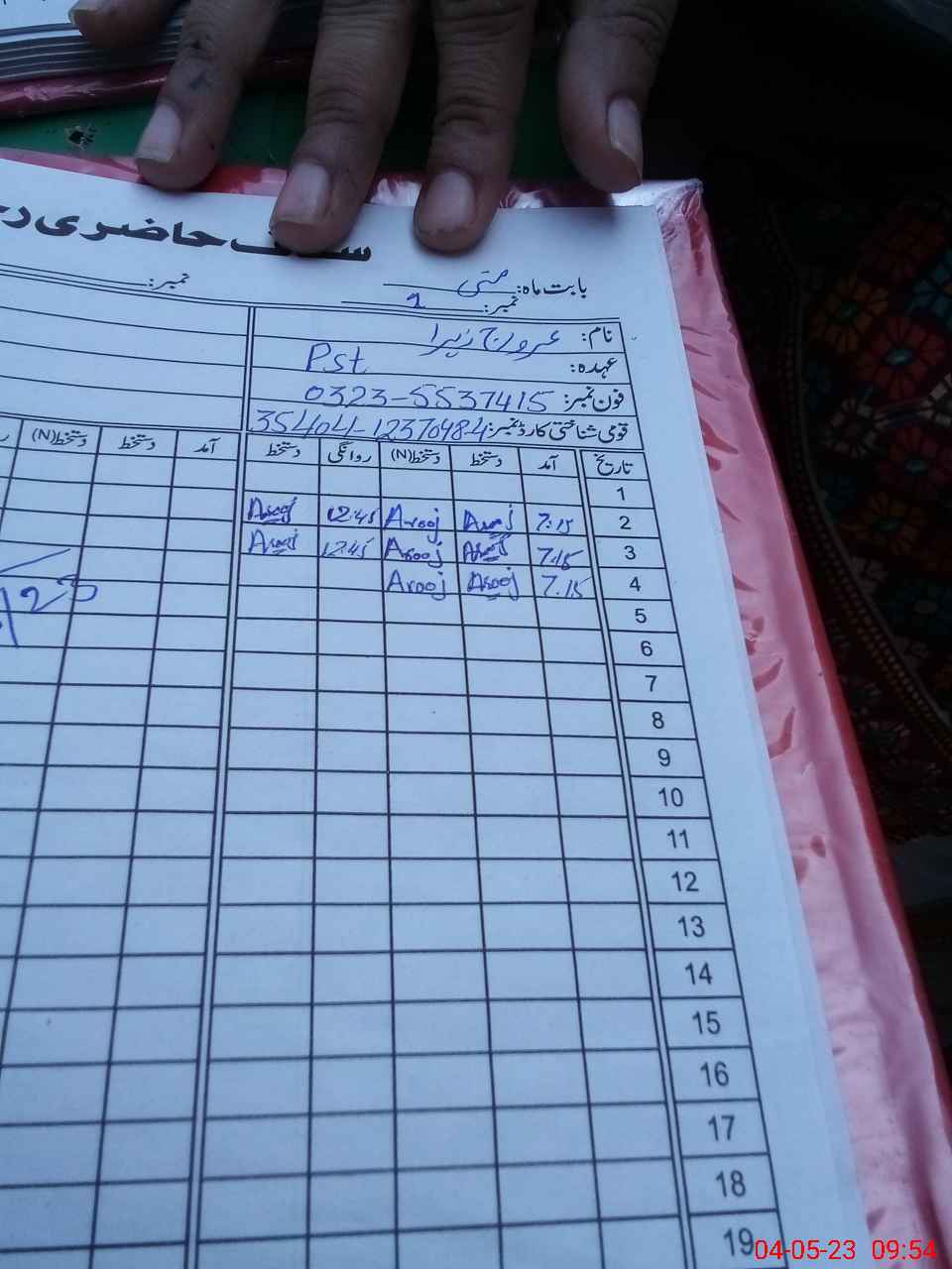 | Name: Aro**** Za**** Designation: (School Headmaster's/Headmistress's) ESE ScMath Phone/Cell Number: 03**** |