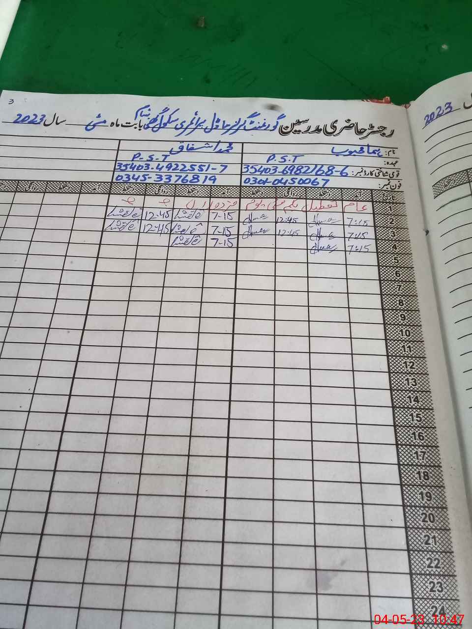 | CNIC | Full Name | Designation | R/C | Absence During Last Calender Month |