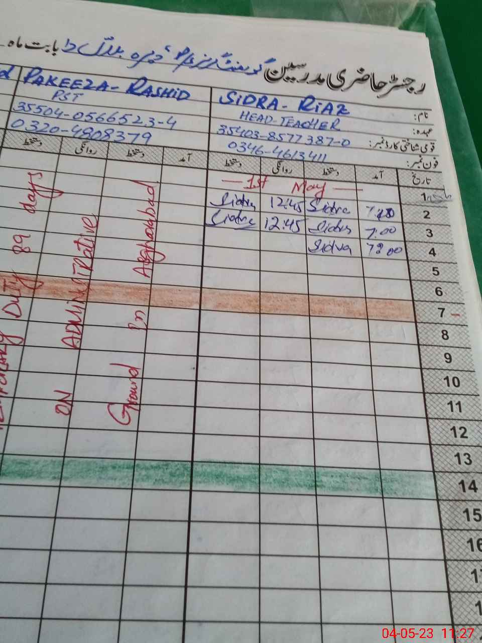 | Name: AS**** KH**** Designation: (School Headmaster's/Headmistress's) PST Phone/Cell Number: 03**** |