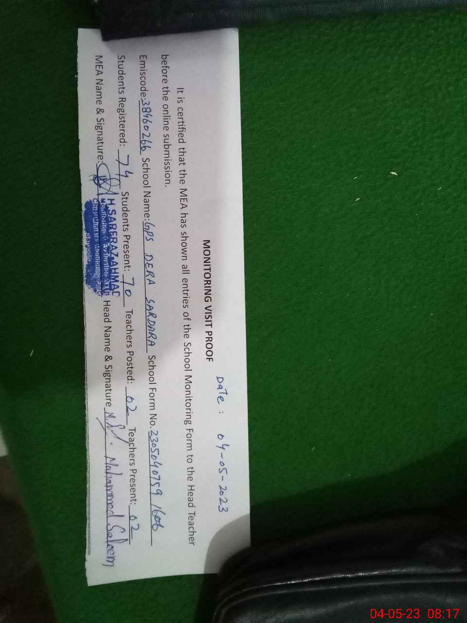 | EMIS Code: 38460266 | Name of School: GPS DERA SARDARA | |||