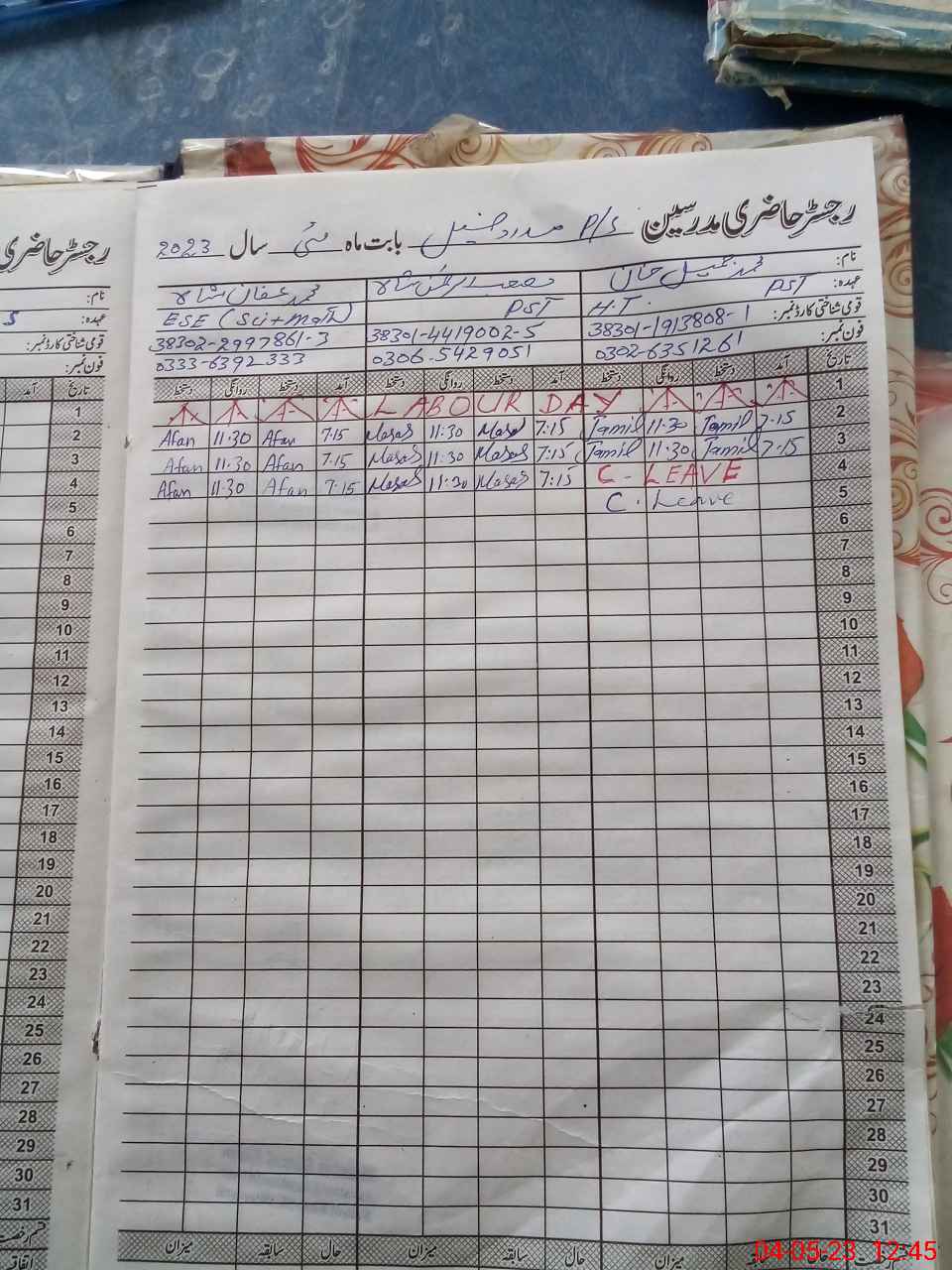 | Name: Ma**** UrRe**** Sh**** Designation: (School Headmaster's/Headmistress's) Pst Phone/Cell Number: 03**** |