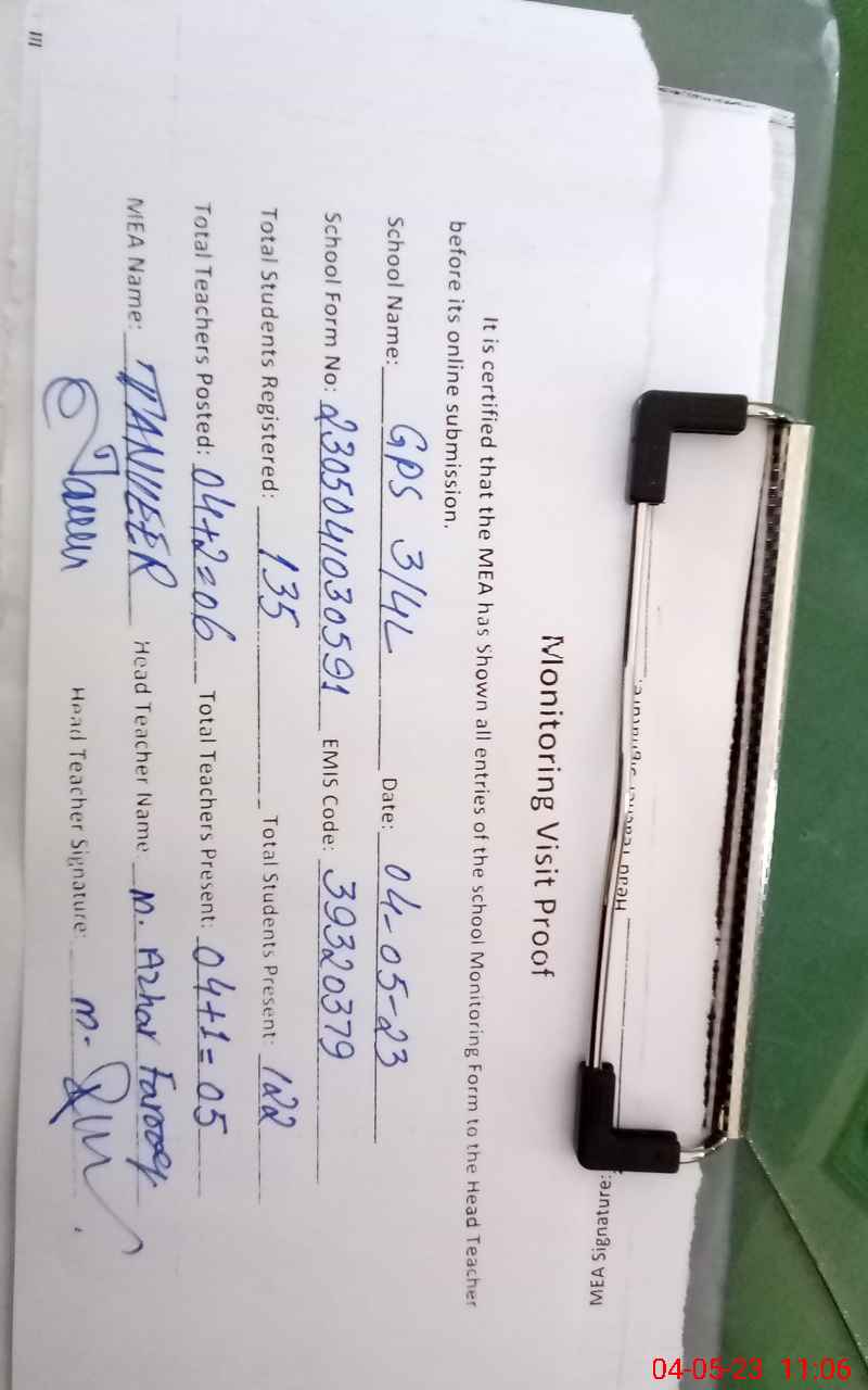 | EMIS Code: 39320379 | Name of School: GPS CHAK 3/4.L | |||
