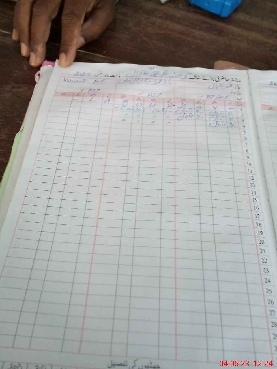 | CNIC | Full Name | Designation | R/C | Absence During Last Calender Month |
