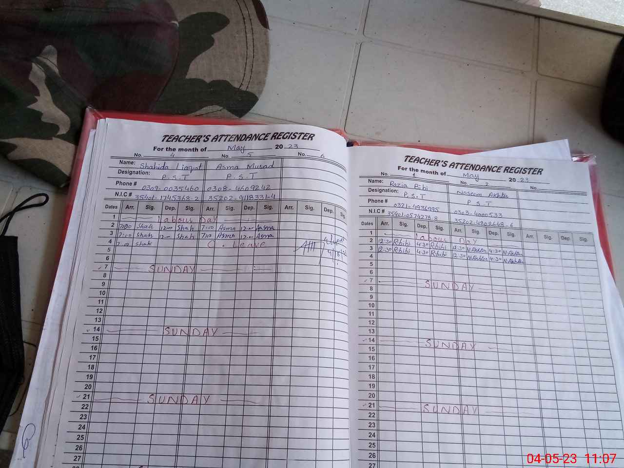 | CNIC | Full Name | Designation | R/C | Absence During Last Calender Month |