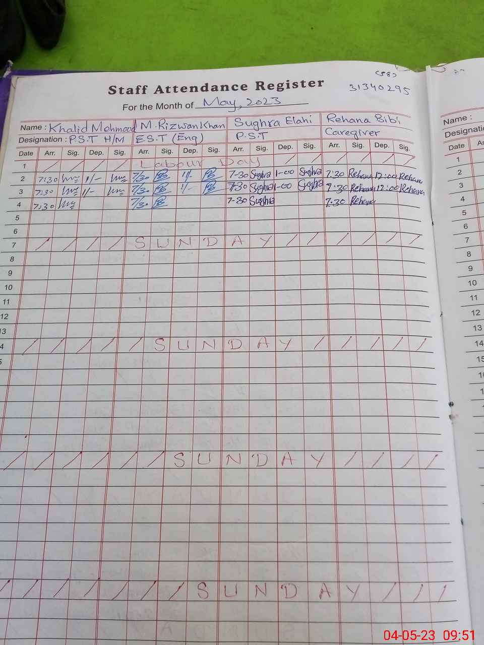 | CNIC | Full Name | Designation | R/C | Absence During Last Calender Month |