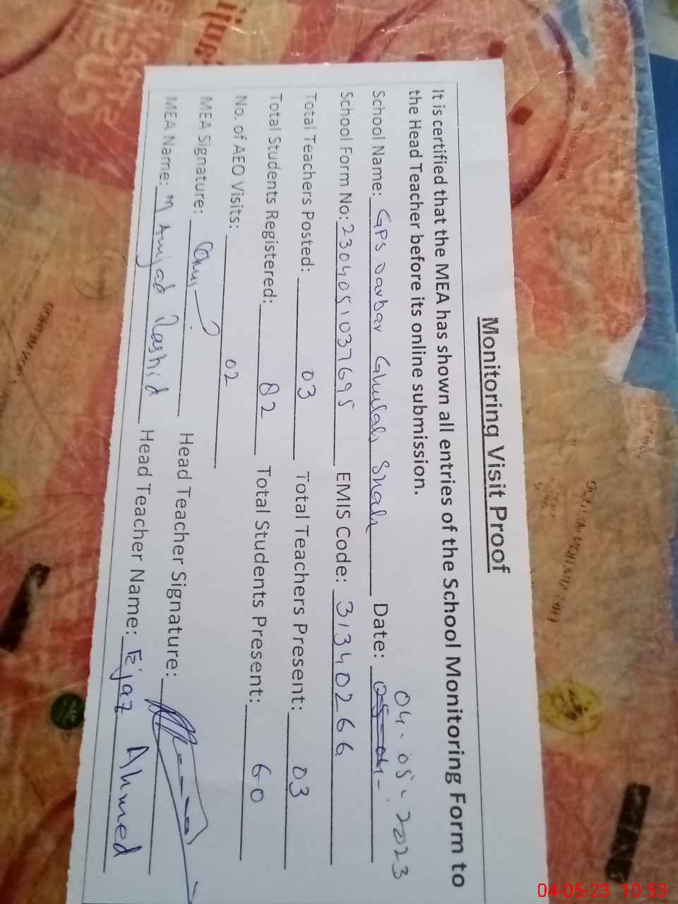 | EMIS Code: 31340266 | Name of School: GPS DARBAR GHULAB SHAH | |||