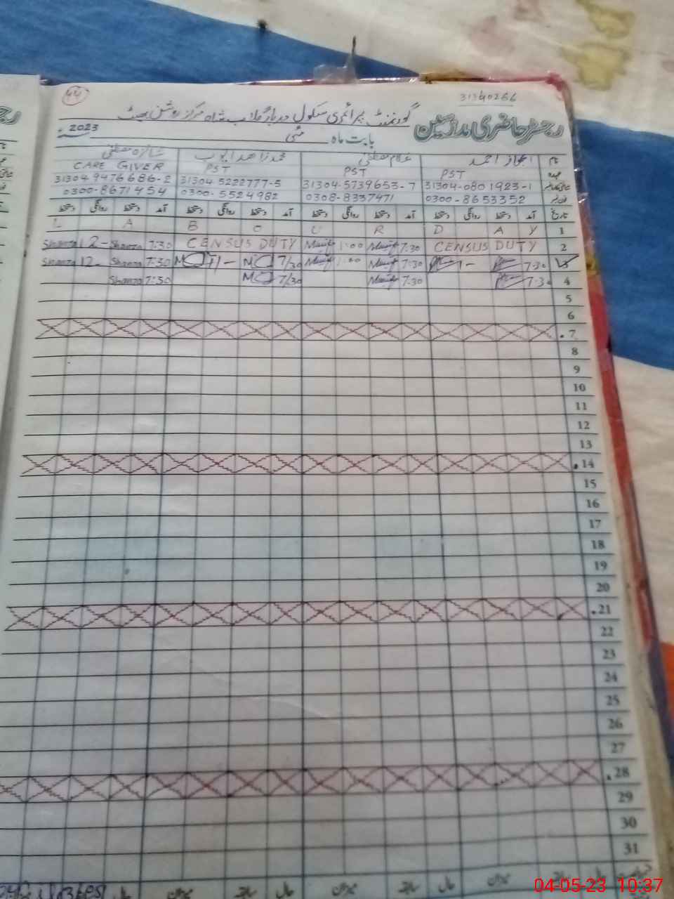 | Name: Mu**** Za**** Ay**** Designation: (School Headmaster's/Headmistress's) PST Phone/Cell Number: 03**** |
