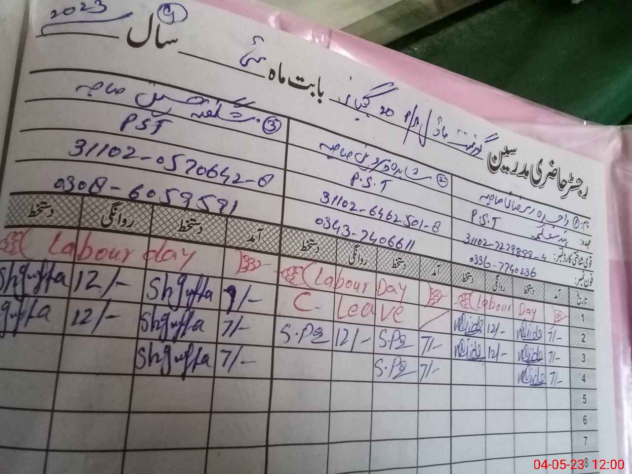 | Name: Za**** Ah**** Designation: (School Headmaster's/Headmistress's) PST Phone/Cell Number: 03**** |