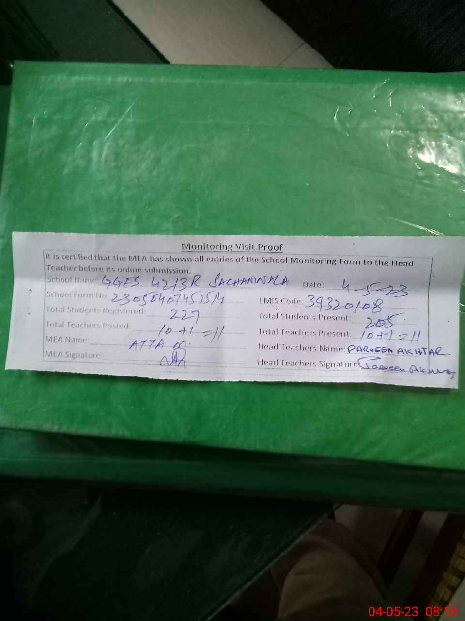 | EMIS Code: 39320108 | Name of School: GGES CHAK NO.42/3-R SACHAN WALA | |||