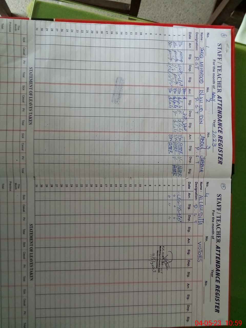 | Attendance Register | Head Teacher | MEA with School | Visit Proof |