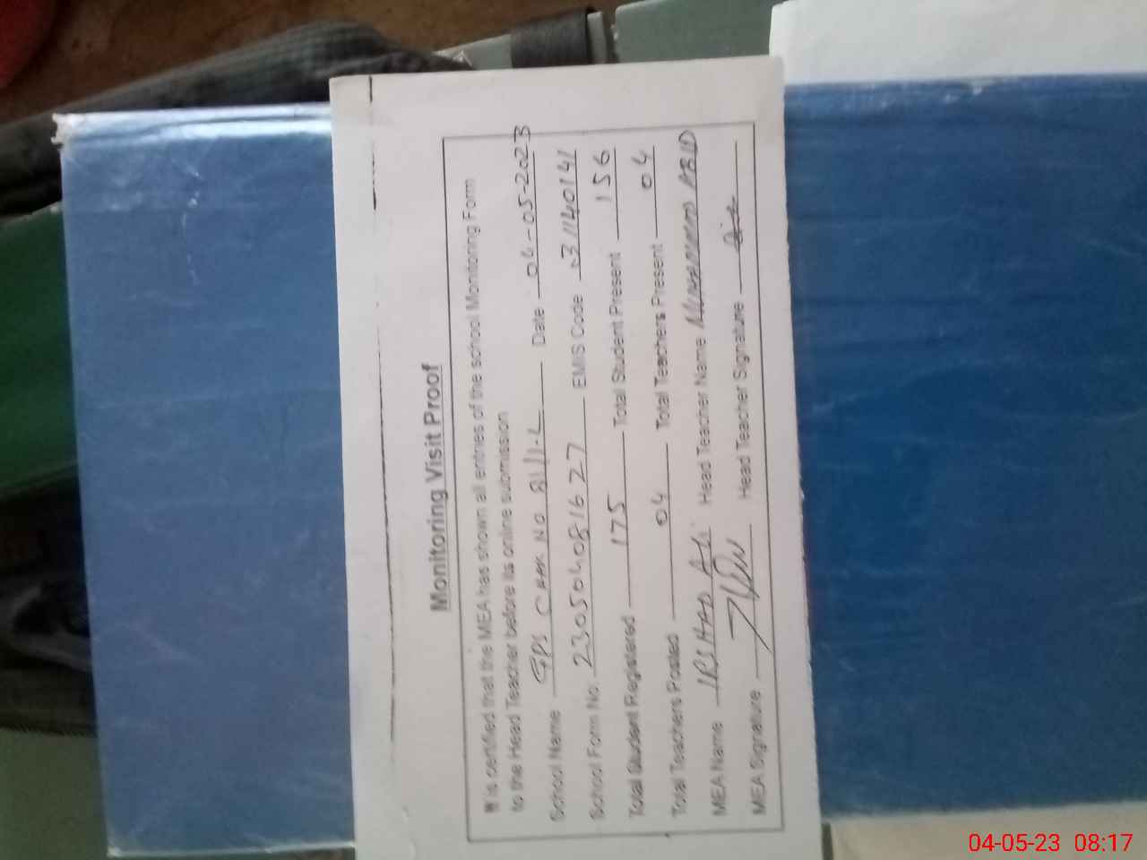 | Attendance Register | Head Teacher | MEA with School | Visit Proof |