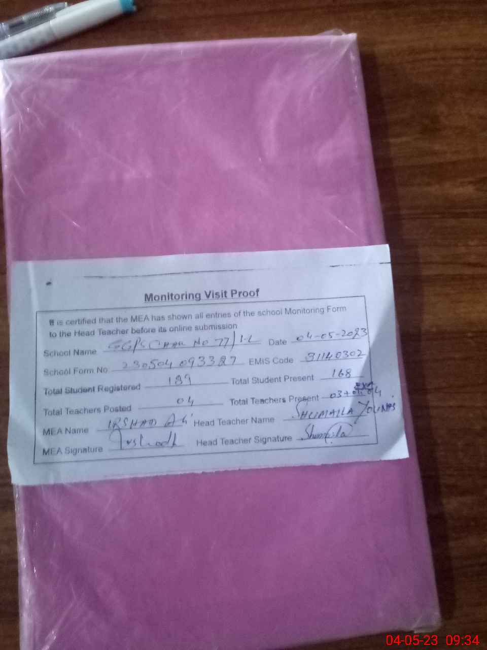 | Attendance Register | Head Teacher | MEA with School | Visit Proof |