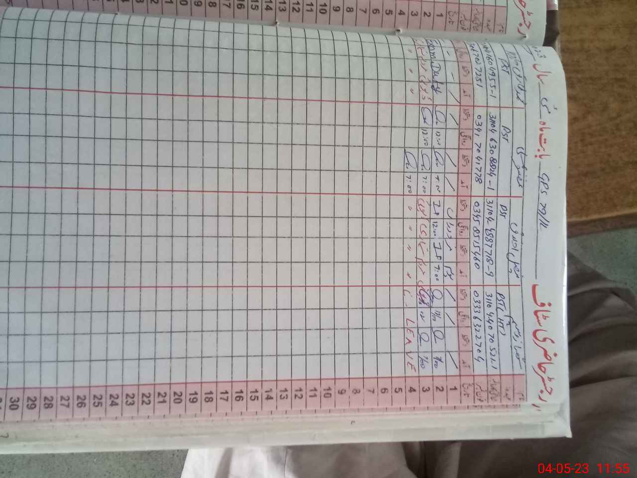 | CNIC | Full Name | Designation | R/C | Absence during last cal. month |