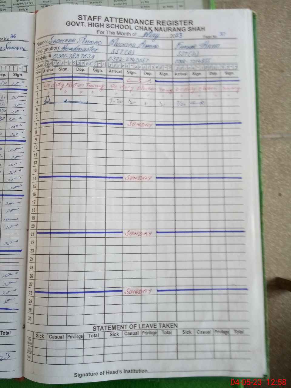 | Name: Gh**** Ya**** Designation: (School Headmaster's/Headmistress's) Head Phone/Cell Number: 03**** |