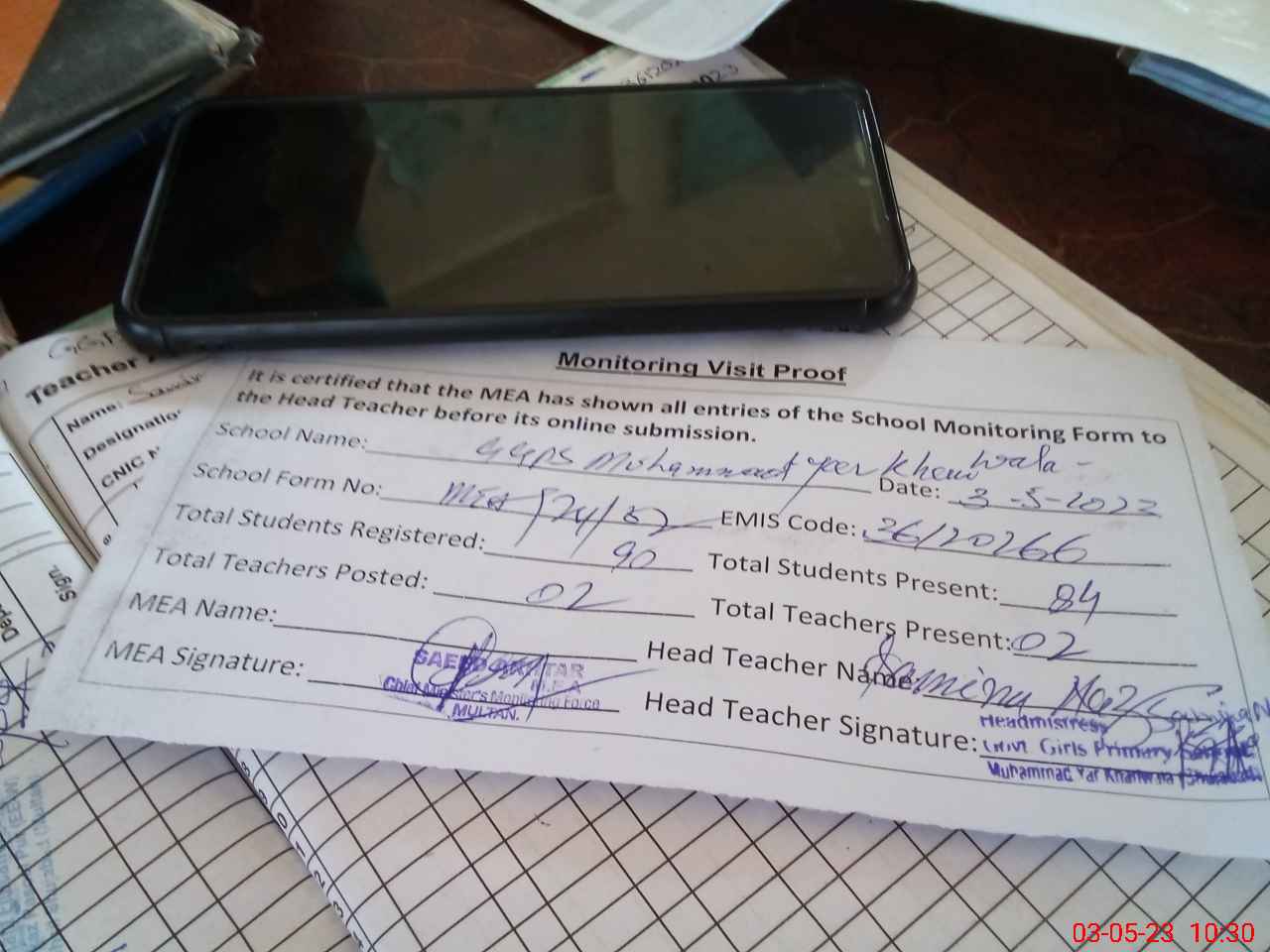 | Attendance Register | Head Teacher | MEA with School | Visit Proof |