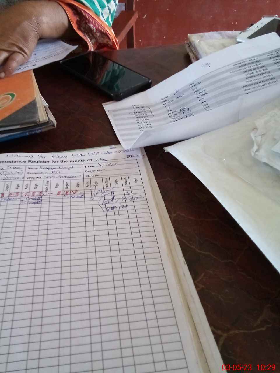 | CNIC | Full Name | Designation | R/C | Absence during last cal. month |