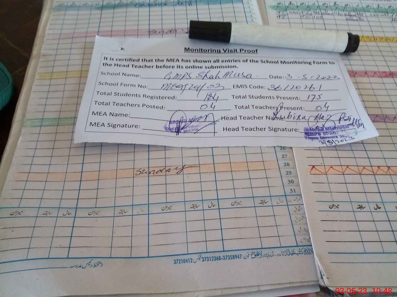 | EMIS Code: 36120261 | Name of School: GMPS SHAH MUSA (IMAM DIN WALA) SHUJABAD | |||