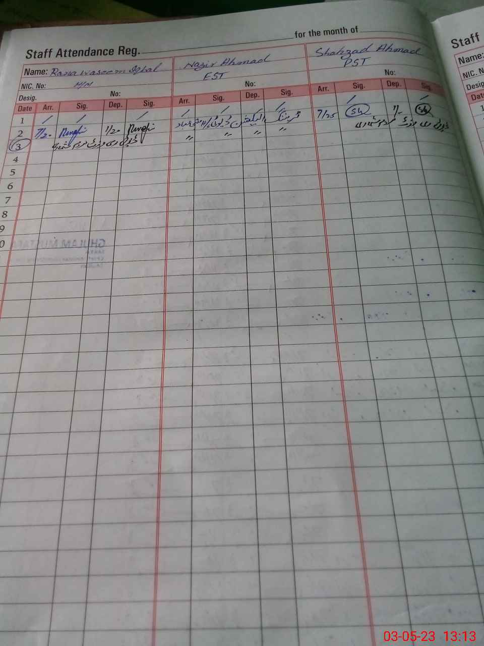 | CNIC | Full Name | Designation | R/C | Absence During Last Calender Month |