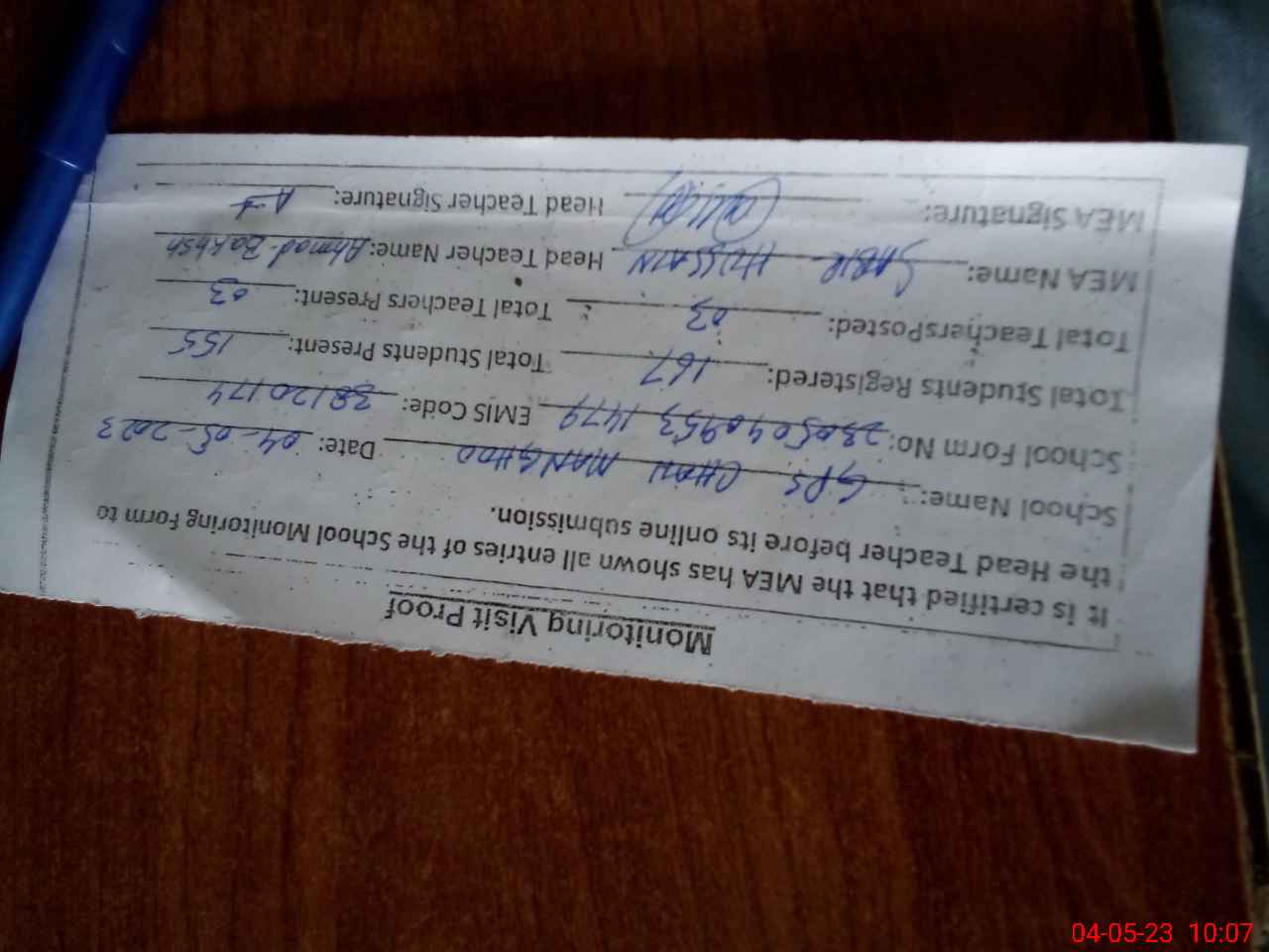 | Certified that this School was Inspected by the Undersigned MEA/DMO Today and the Information Stated Above is as Per Record. | |||||