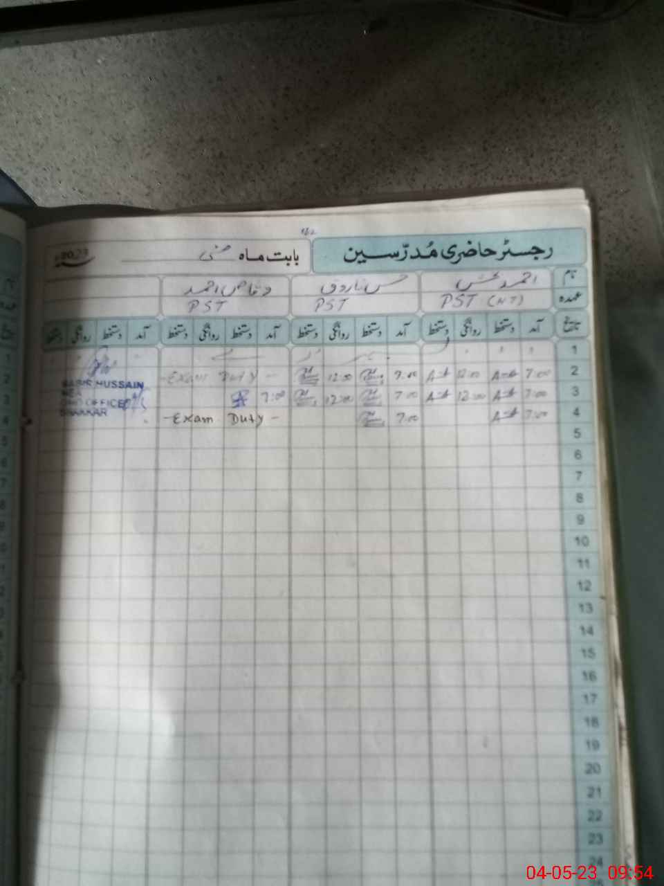 | 38**** | Wa**** Ah**** | PST | Regular | 0 | 0 | 0 | 0 | 0 | 0 | 0 | 0 | 0 | Exam Duty |