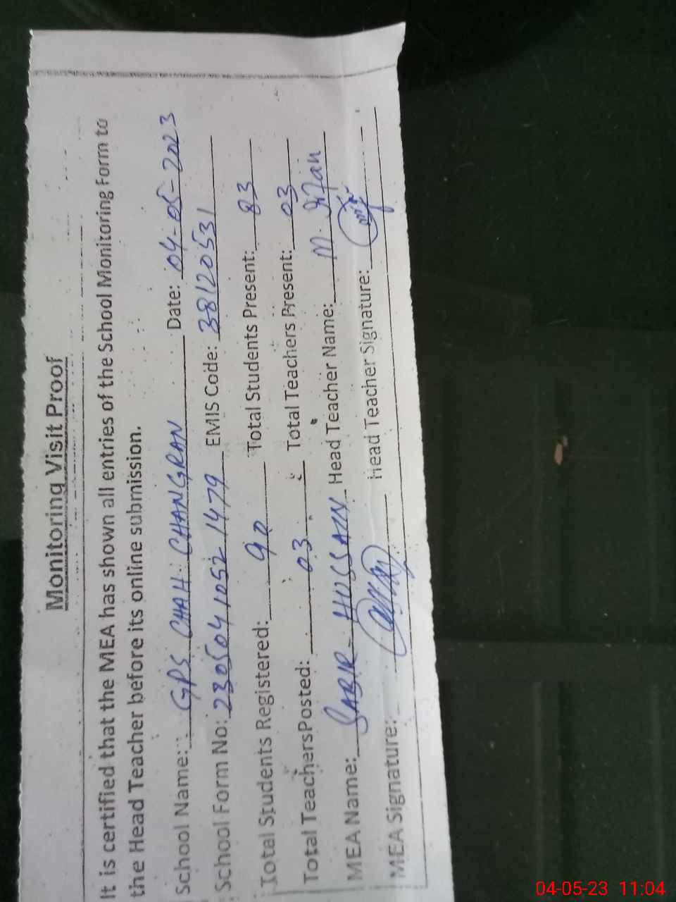| EMIS Code: 38120531 | Name of School: GPS CHAH CHANGRAN WALA | |||