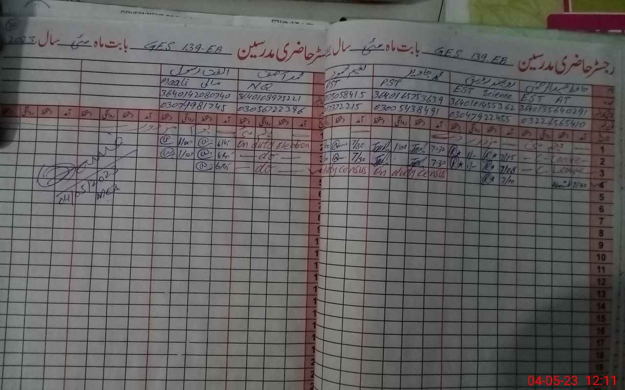| Name: RA**** NA**** AH**** AF**** Designation: (School Headmaster's/Headmistress's) SST (SCIENCE) Phone/Cell Number: 03**** |