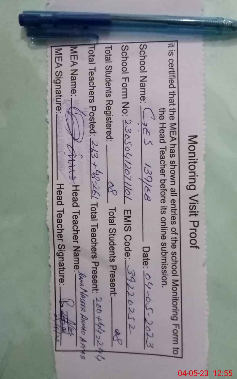 | EMIS Code: 39220252 | Name of School: GES CHAK NO 139 EB | |||