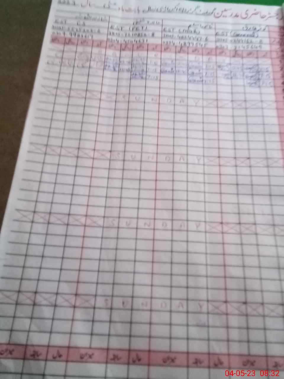 | CNIC | Full Name | Designation | R/C | Absence During Last Calender Month |
