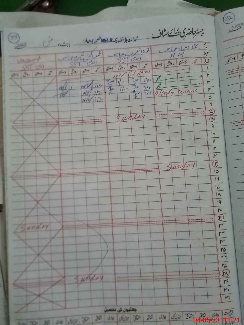 | CNIC | Full Name | Designation | R/C | Absence During Last Calender Month |