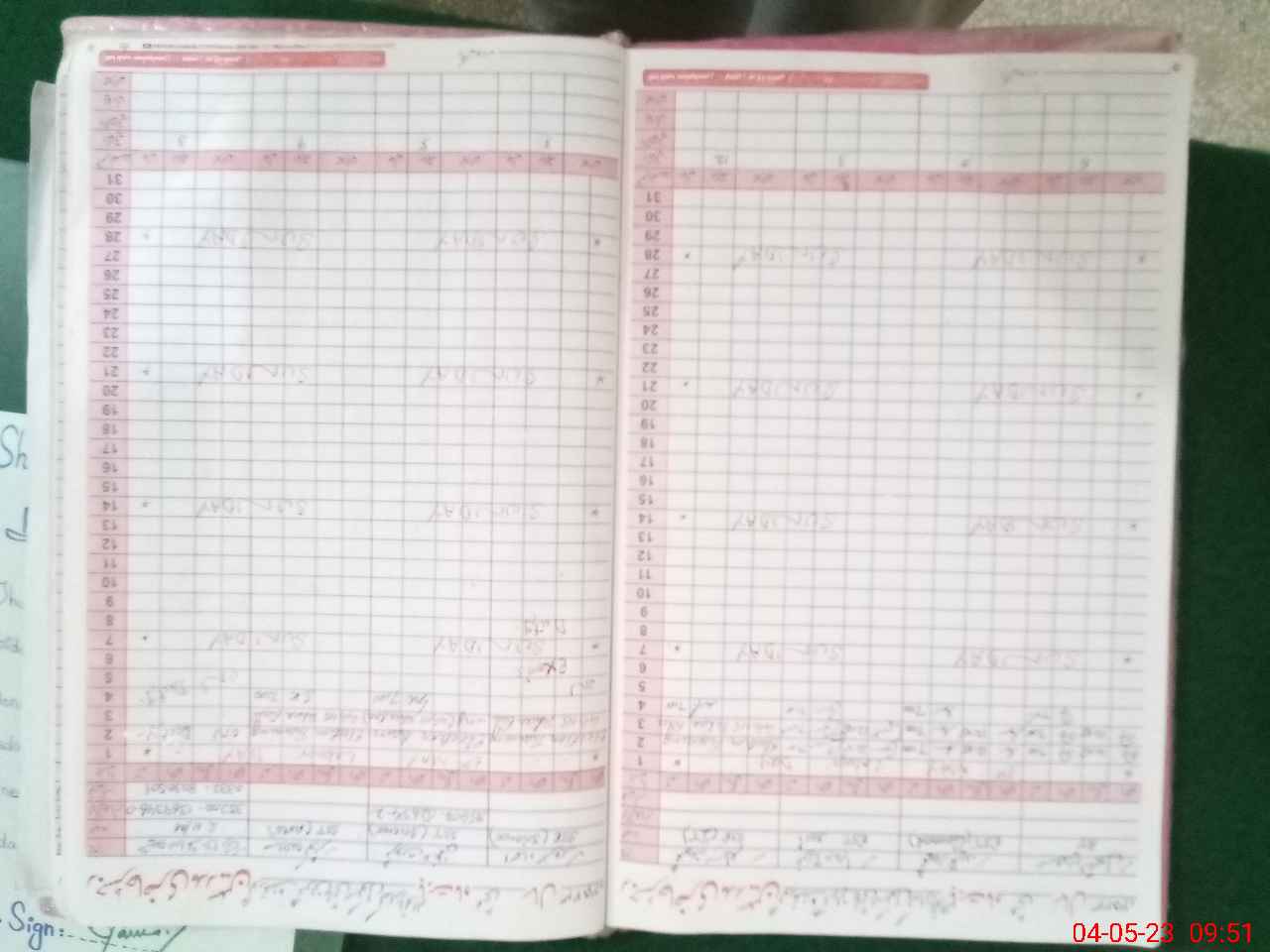 | No. of Students Present - Male | 5 | 0 | 1 | 5 | 4 | 0 | 4 | 0 | 0 | 0 | 0 | 0 | 0 | 19 | ||
