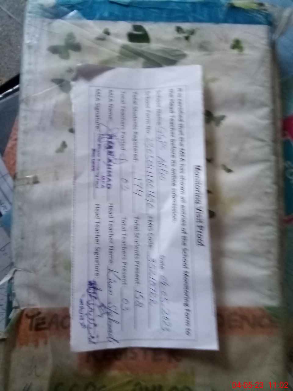 | Attendance Register | Head Teacher | MEA with School | Visit Proof |