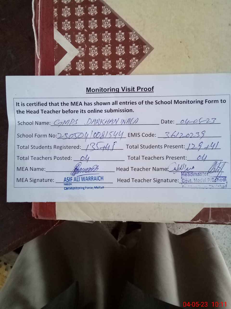 | EMIS Code: 36120239 | Name of School: GMPS DARKHAN WALA | |||