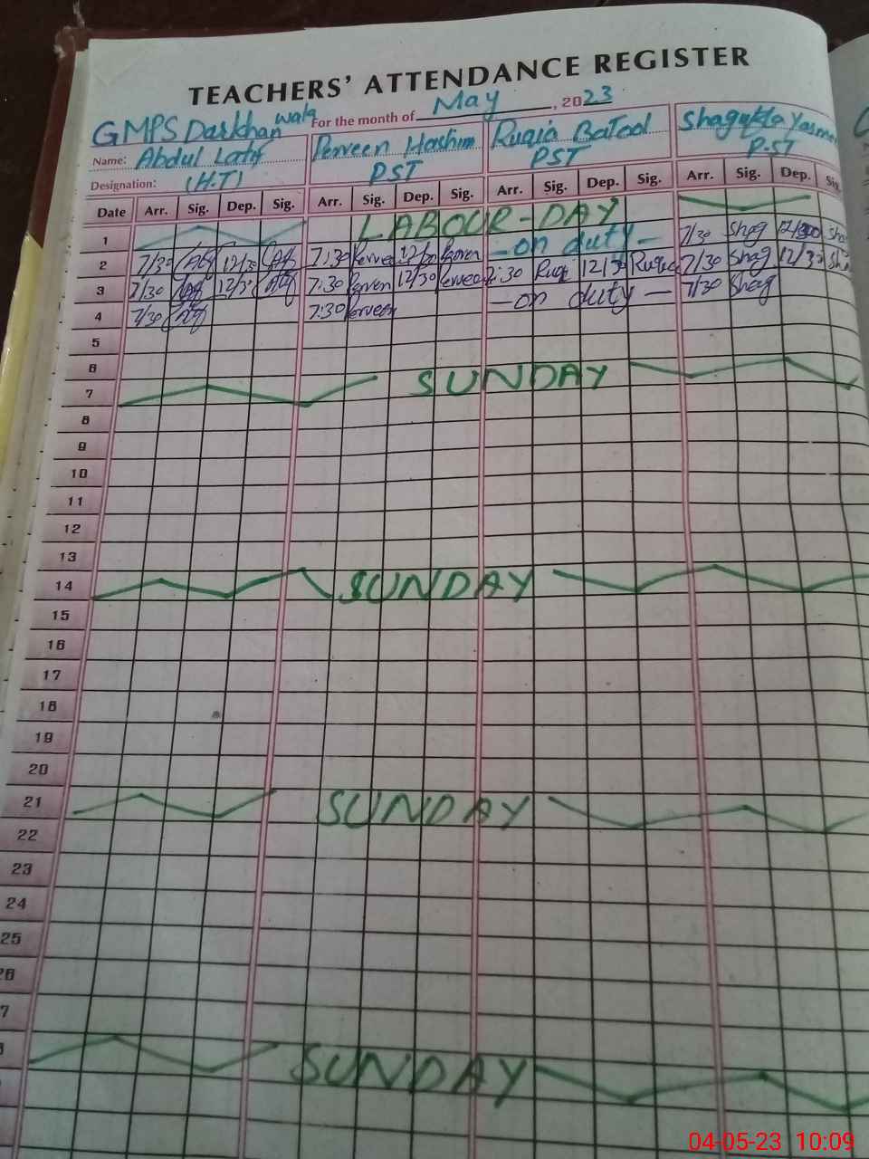 | 36**** | Ru**** Ba**** | PST | Regular | 0 | 0 | 0 | 0 | 0 | 0 | 0 | 0 | 0 | Exam Duty |