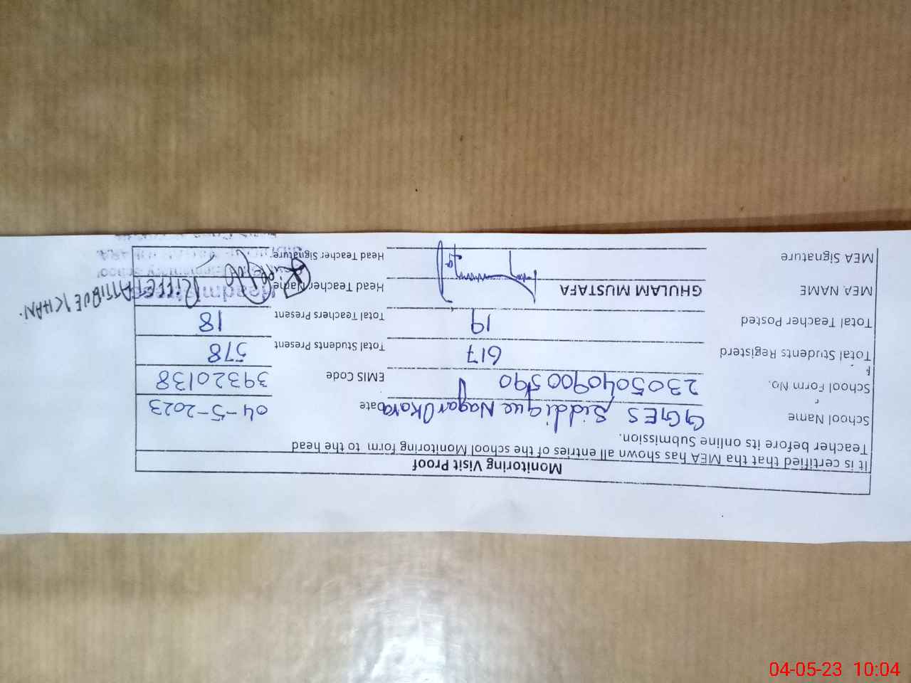 | EMIS Code: 39320138 | Name of School: GGES SIDDIQUE NAGAR OKARA | |||