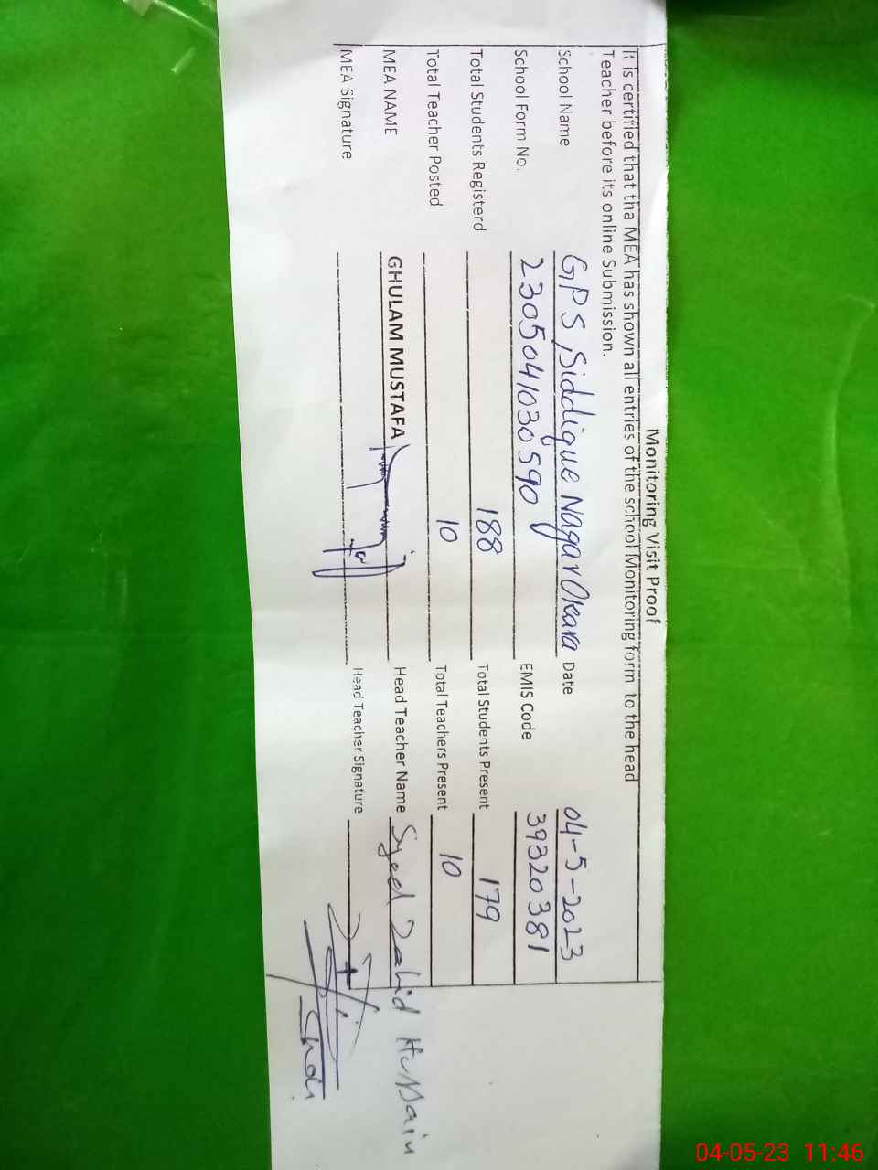 | EMIS Code: 39320381 | Name of School: GPS SIDDIQUE NAGAR | |||