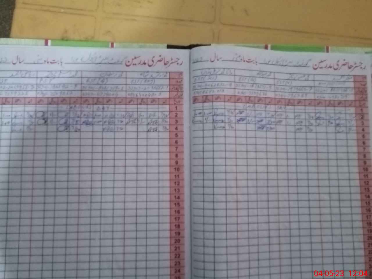 | CNIC | Full Name | Designation | R/C | Absence During Last Calender Month |