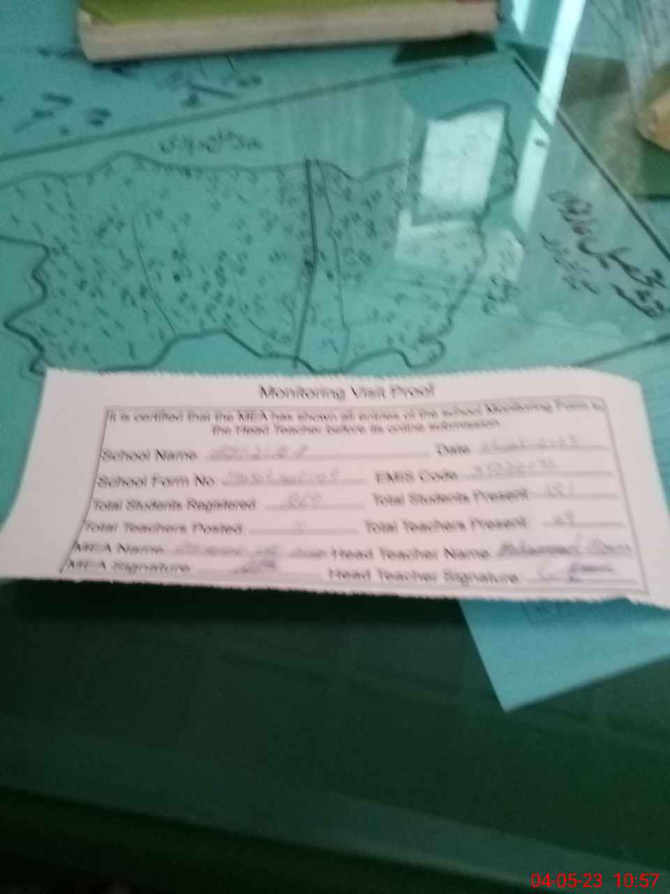| Attendance Register | Head Teacher | MEA with School | Visit Proof |