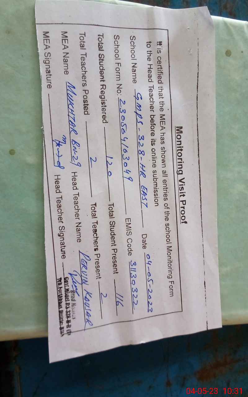 | EMIS Code: 31130322 | Name of School: GMPS CHAK NO. 328 HR (E) | |||