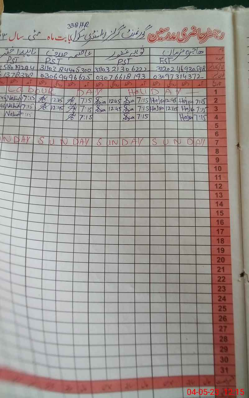 | Name: Ha**** Fa**** Designation: (School Headmaster's/Headmistress's) S ESE Art Phone/Cell Number: 03**** |