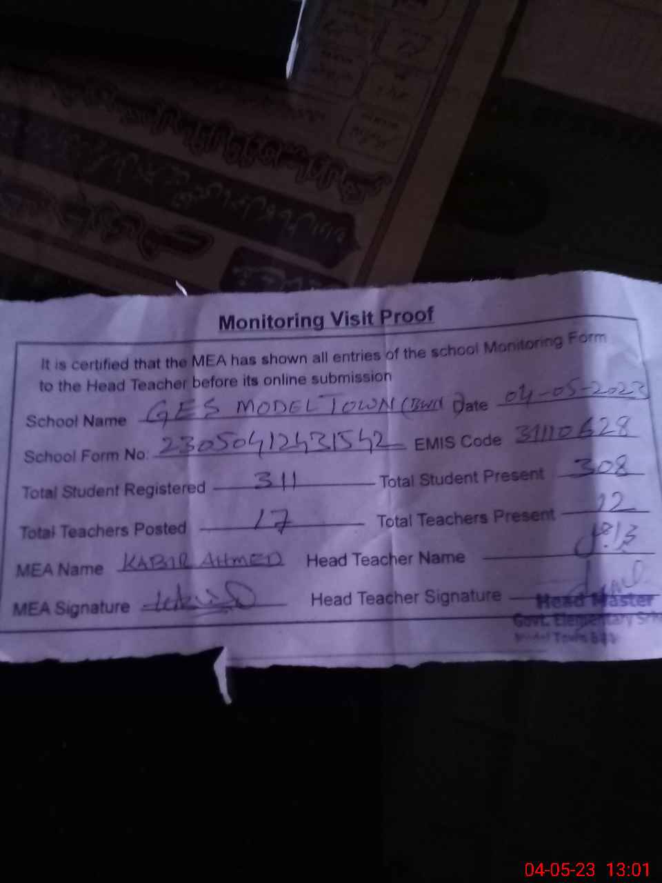 | EMIS Code: 31110628 | Name of School: GES MODEL TOWN | |||
