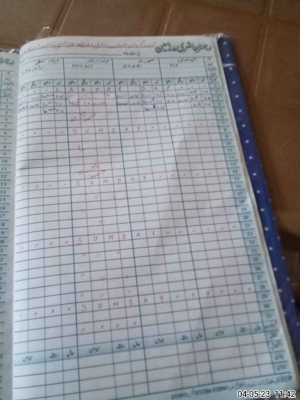 | CNIC | Full Name | Designation | R/C | Absence During Last Calender Month |